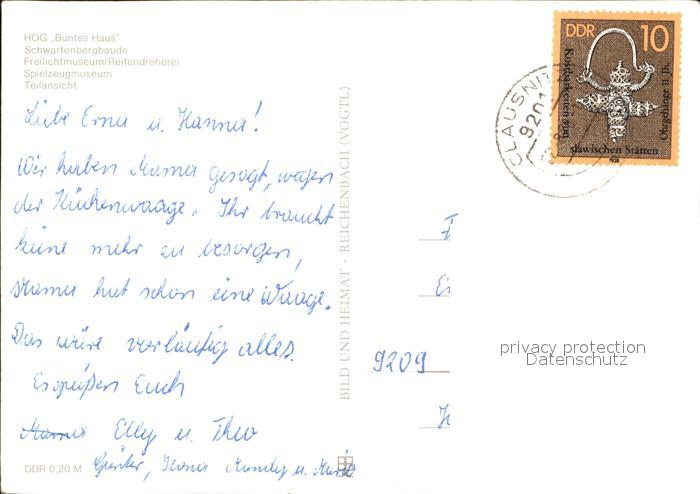 72409782 alte Postkarte Seiffen Erzgebirge Restaurant Buntes Haus Schwartenbergbaude Freilichtmuseum postalisch gelaufen Erhaltung siehe scans KatCode: 11110014181350