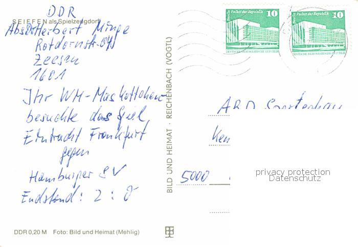 72710395 alte Postkarte Seiffen Erzgebirge Spielzeugdorf postalisch gelaufen Erhaltung siehe scans [LiesaD40] KatCode: 11110014181350
