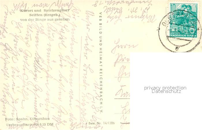 72962990 alte Postkarte Seiffen Erzgebirge Spielzeugdorf postalisch gelaufen Erhaltung siehe scans [LiesaD40] KatCode: 11110014181350
