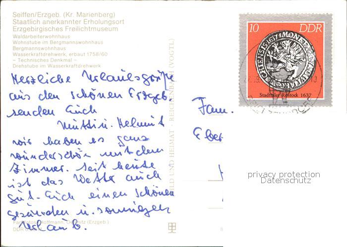 72533529 alte Postkarte Seiffen Erzgebirge Waldarbeiterhaus Wohnstube Bergmannshaus Wsserkraftdrehwerk Drehstube postalisch gelaufen Erhaltung siehe scans [WerneD78 kt116box] KatCode: 11110014181350