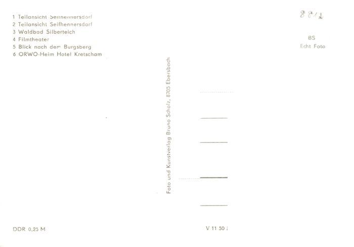 73911461 Seifhennersdorf Teilansichten Waldbad Silberteich Filmtheater Burgsberg ORWO Heim Hotel Kretscham postalisch nicht gelaufen Erhaltung siehe scans [FriedD77] KatCode: 11110014286410