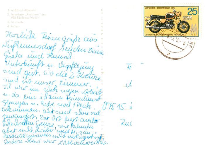 73947288 alte Postkarte Seifhennersdorf Waldbad Silbrteich Ferienheim Kretscham des VEB Filmfabrik Wollen Filmtheater Rathaus postalisch gelaufen Erhaltung siehe scans [WerneD78] KatCode: 11110014286410