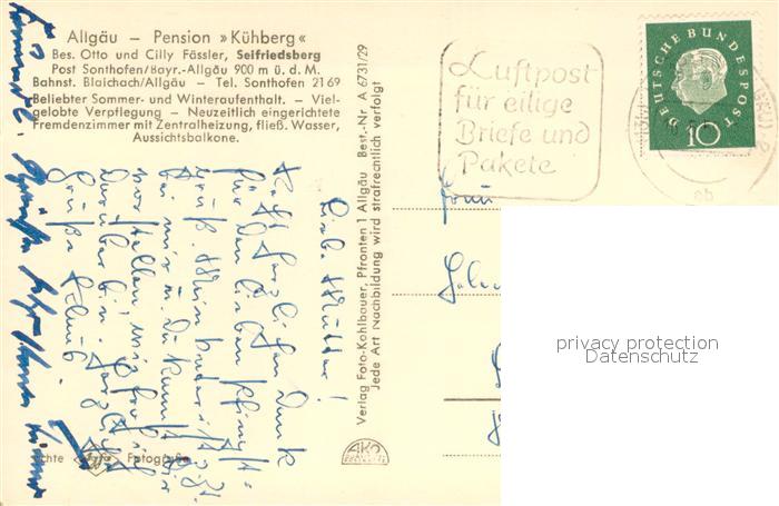 73652725 alte Postkarte Seifriedsberg Sonthofen Cafe Pension Kuehberg Allgaeuer Alpen postalisch gelaufen Erhaltung siehe scans [FriedD77] KatCode: 11110009780115