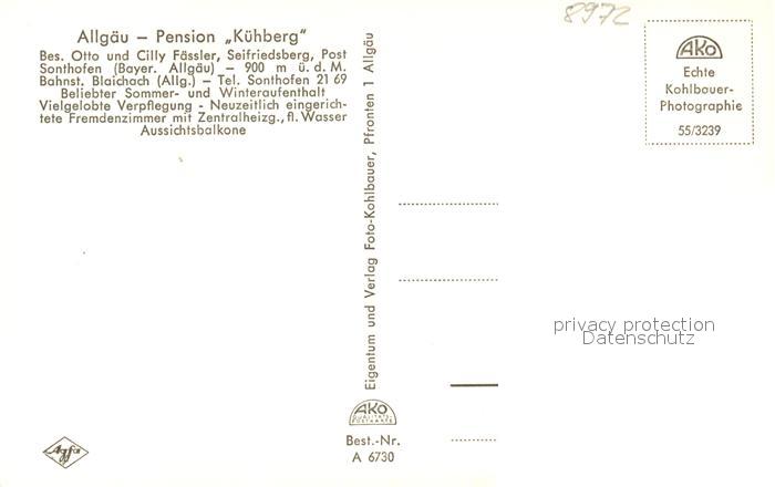 43352188 Seifriedsberg Sonthofen Cafe Pension Kuehberg mit Nebenhaus postalisch nicht gelaufen Erhaltung siehe scans [WerneD78] KatCode: 11110009780115