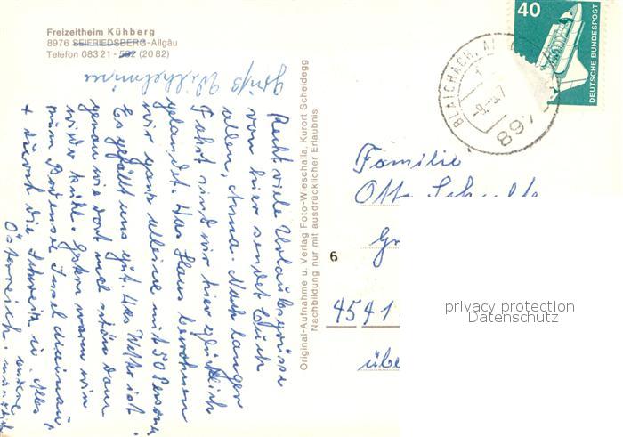 73776743 alte Postkarte Seifriedsberg Sonthofen Freizeitheim Kuehberg postalisch gelaufen Erhaltung siehe scans [WerneD78] KatCode: 11110009780115