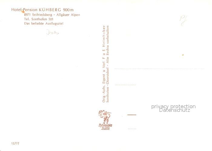 73652818 Seifriedsberg Sonthofen Hotel Pension Kuehberg Allgaeuer Alpen postalisch nicht gelaufen Erhaltung siehe scans [FriedD77] KatCode: 11110009780115