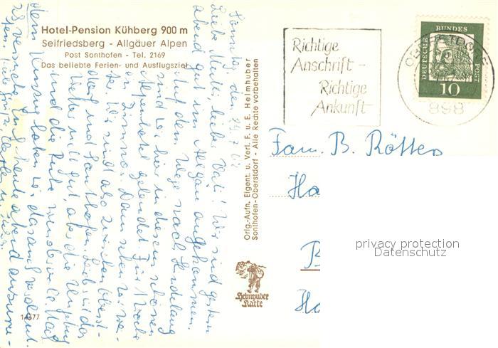 73652816 alte Postkarte Seifriedsberg Sonthofen Hotel Pension Kuehberg Landschaftspanorama Allgaeuer Alpen postalisch gelaufen Erhaltung siehe scans [FriedD77] KatCode: 11110009780115