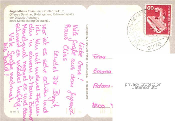 72757361 alte Postkarte Seifriedsberg Sonthofen Jugendhaus Elias Gruenten postalisch gelaufen Erhaltung siehe scans [KathaD81] KatCode: 11110009780115