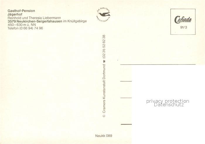 73642194 Seigertshausen Gasthof Pension Jaegerhof Gaststube Speisesaal postalisch nicht gelaufen Erhaltung siehe scans [WerneD78] KatCode: 11110006634017