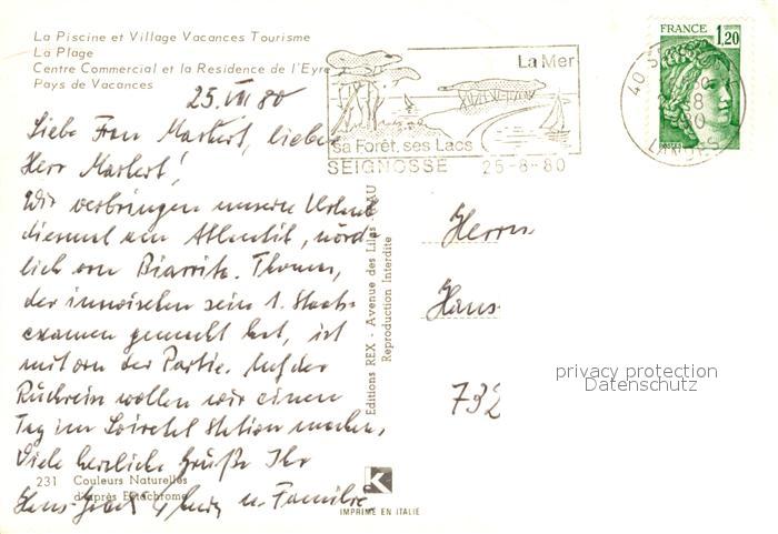 13357205 carte postale Seignosse Le Penon Piscine et Village Vacances Tourisme Plage Centre Commercial Residence de l’Eyre postalisch gelaufen Erhaltung siehe scans [FriedD77] KatCode: 11170040140296