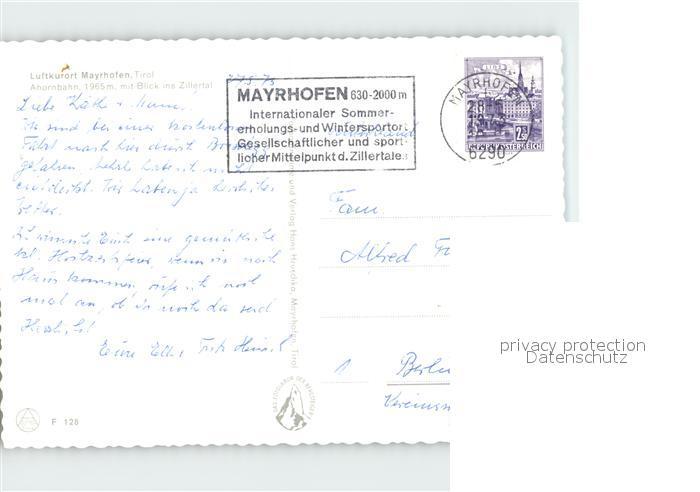 alte Postkarte Seilbahn Ahorn Mayrhofen Zillertal postalisch gelaufen Erhaltung siehe scans