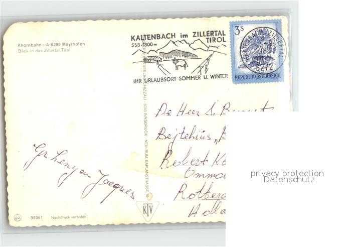 alte Postkarte Seilbahn Ahorn Mayrhofen Zillertal postalisch gelaufen Erhaltung siehe scans