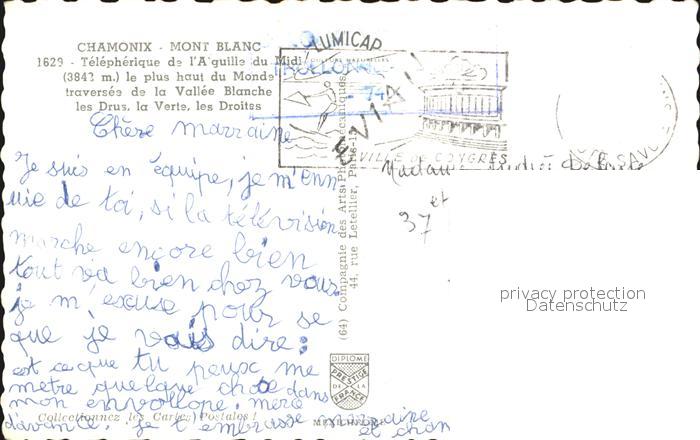 alte Postkarte Seilbahn Aiguille du Midi Chamonix Mont Blanc postalisch gelaufen Erhaltung siehe scans