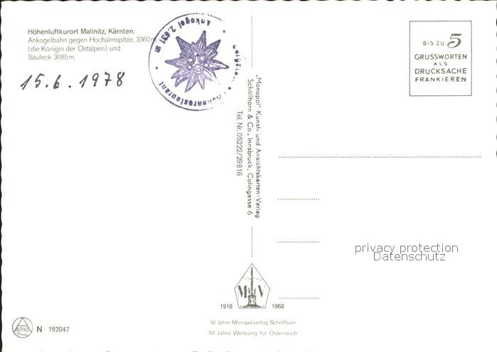 Seilbahn Ankogel Mallnitz Hochalmspitze Saeuleck postalisch nicht gelaufen Erhaltung siehe scans