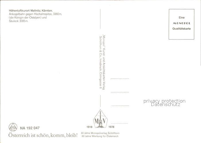 72611536 Seilbahn Ankogel Mallnitz Hochalmspitze KatCode 22040000000400