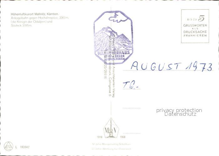 Seilbahn Ankogelbahn Mallnitz Kaernten postalisch nicht gelaufen Erhaltung siehe scans