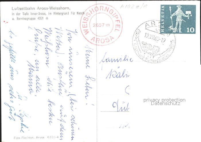 alte Postkarte Seilbahn Arosa-Weisshorn Piz Kesch Berninagruppe postalisch gelaufen Erhaltung siehe scans