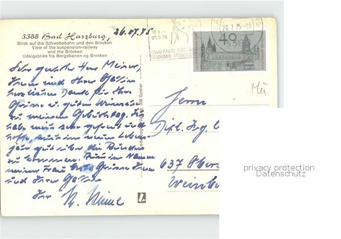 alte Postkarte Seilbahn Bad Harzburg Brocken postalisch gelaufen Erhaltung siehe scans