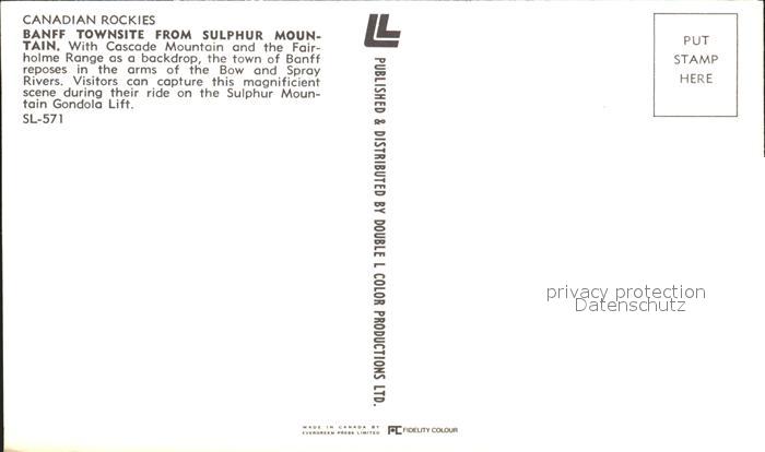 Seilbahn Banff Townsite Canadian Rockies postalisch nicht gelaufen Erhaltung siehe scans