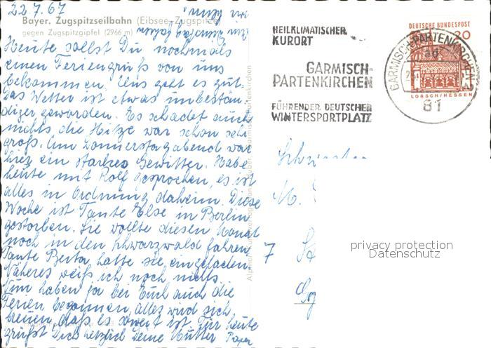 alte Postkarte Seilbahn Bayerische Zugspitzbahn Eibsee-Zugspitze postalisch gelaufen Erhaltung siehe scans