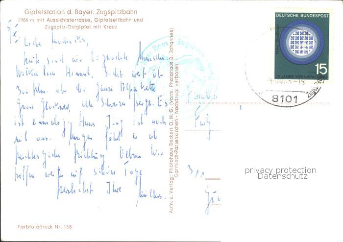 alte Postkarte Seilbahn Bayerische Zugspitzbahn Gipfelstation postalisch gelaufen Erhaltung siehe scans