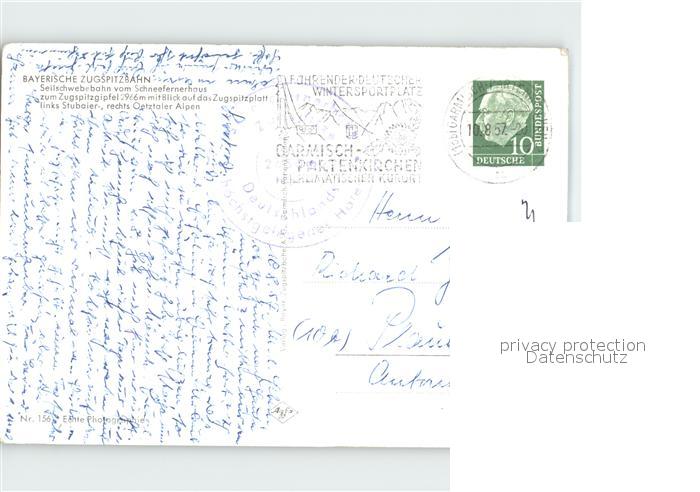 alte Postkarte Seilbahn Bayerische Zugspitzbahn Oetztaler Alpen Zugspitzplatt postalisch gelaufen Erhaltung siehe scans