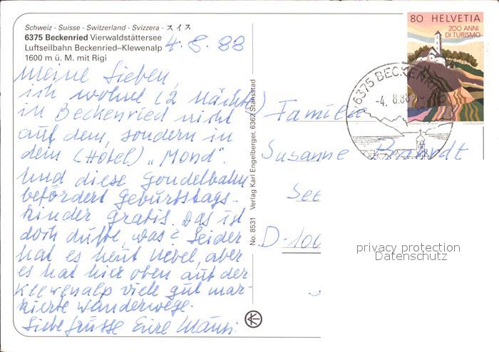 alte Postkarte Seilbahn Beckenried-Klewenalp Vierwaldstaettersee postalisch gelaufen