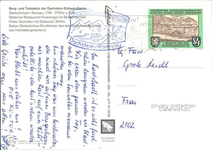 alte Postkarte Seilbahn Berg- und Talstation Dachstein-Suedwandbahn Ramsau Gletscher-Restaurant Hunerkogel postalisch gelaufen Erhaltung siehe scans