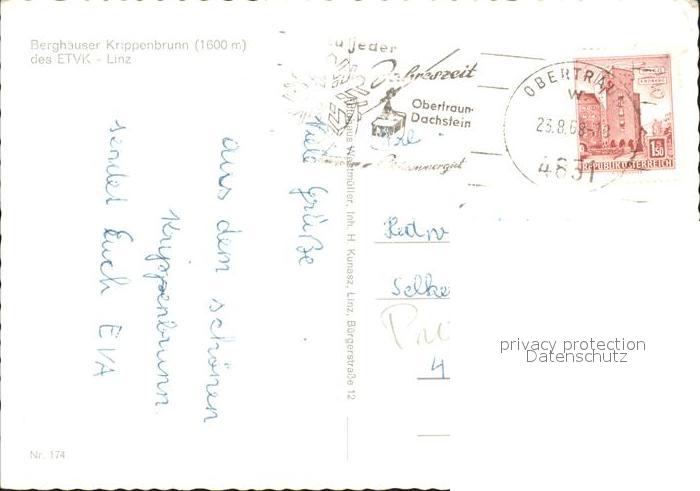 alte Postkarte Seilbahn Berghaeuser Krippenbrunn ETVK-Linz postalisch gelaufen Erhaltung siehe scans