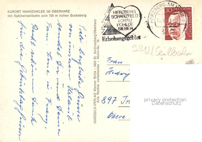 alte Postkarte Seilbahn Bocksberg Hahnenklee postalisch gelaufen Erhaltung siehe scans [PaolaD17]