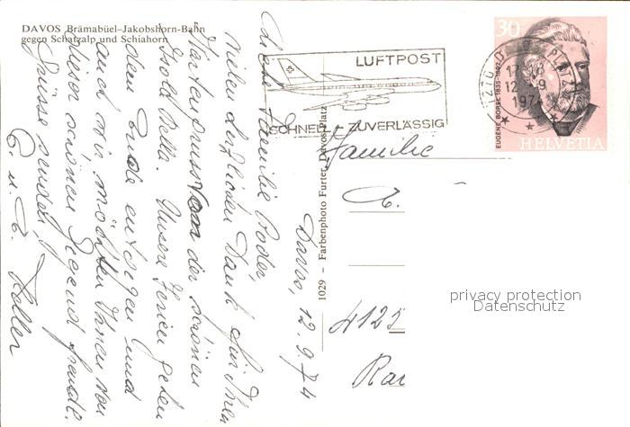 alte Postkarte Seilbahn Braemabueel-Jakobshorn Davos Schatzalp Schiahorn postalisch gelaufen Erhaltung siehe scans
