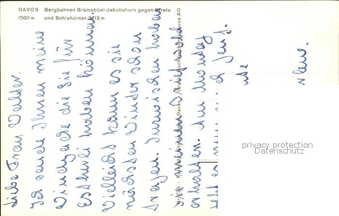 Seilbahn Braemabueel-Jakobshorn Davos Strela Schiahoerner postalisch nicht gelaufen Erhaltung siehe scans