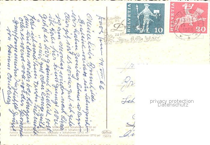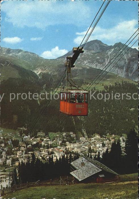 alte Postkarte Seilbahn Braemabueel-Jakobshorn Schatzalp Schiahoerner Davos postalisch gelaufen Erhaltung siehe scans