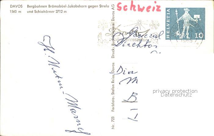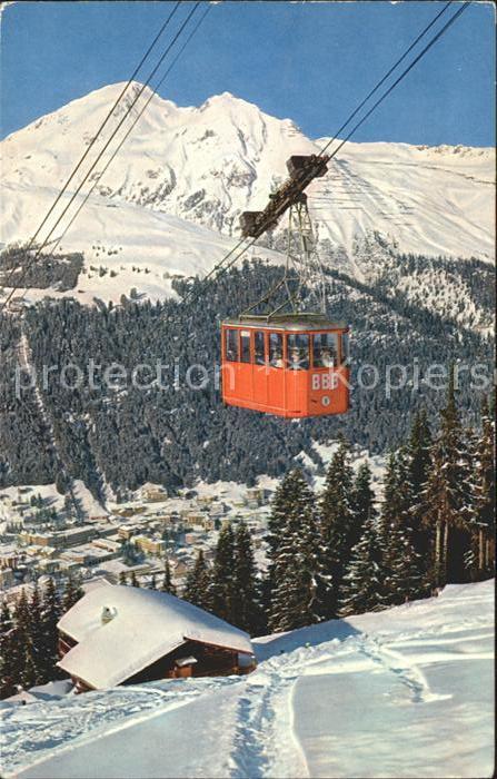 alte Postkarte Seilbahn Braemabueel-Jakobshorn Strela Davos Schiahoerner postalisch gelaufen Erhaltung siehe scans