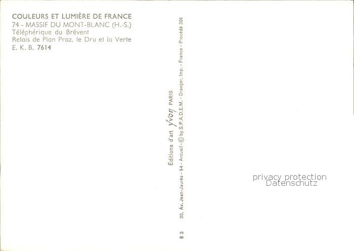 Seilbahn Brevent Massif du Mont-Blanc Plan Praz Dru Verte postalisch nicht gelaufen Erhaltung siehe scans