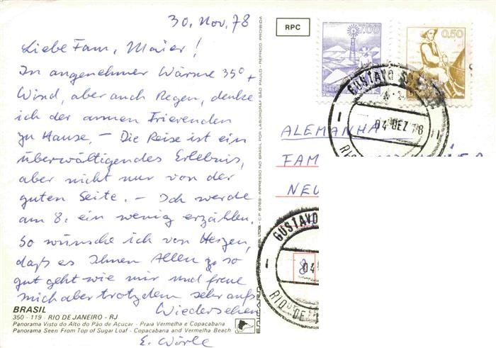 74027904 Seilbahn Cable-Car Telepherique Brazil Rio de Janero postalisch nicht gelaufen Erhaltung siehe scans [SanaeD93] KatCode: 22040000000400
