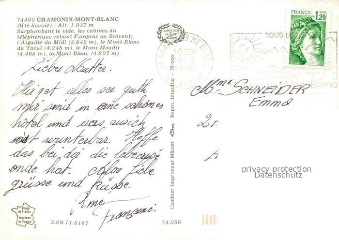 74022518 alte Postkarte Seilbahn Cable-Car Telepherique Chamonix Mont Blanc postalisch gelaufen Erhaltung siehe scans [SanaeD93] KatCode: 22040000000400