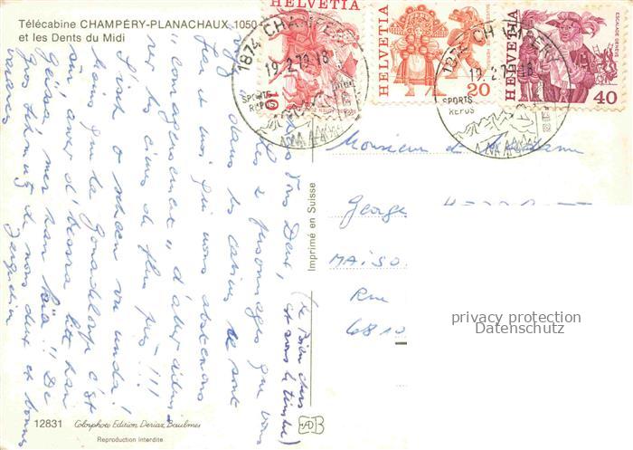 74023561 alte Postkarte Seilbahn Cable-Car Telepherique Champery Planachaux Dents Midi postalisch gelaufen Erhaltung siehe scans [IrynaD87] KatCode: 22040000000400