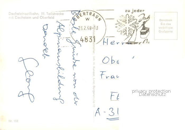 73898998 alte Postkarte Seilbahn Cable-Car Telepherique Dachsteinseilbahn Dachstein Oberfeld postalisch gelaufen Erhaltung siehe scans [IrynaD87] KatCode: 22040000000400