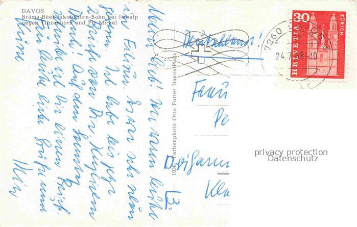 74105023 alte Postkarte Seilbahn Cable-Car Telepherique Davos Braemer Bueel postalisch gelaufen Erhaltung siehe scans [IrynaD87] KatCode: 22040000000400