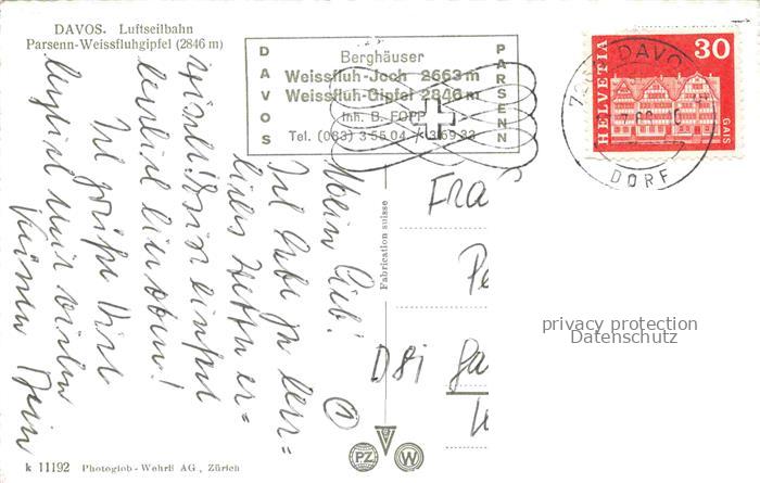 74134356 alte Postkarte SEILBAHN Cable-Car Telepherique Davos Parsen Weissfluhgipfel postalisch gelaufen Erhaltung siehe scans [IrynaD87] KatCode: 22040000000400
