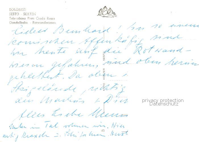 73901265 alte Postkarte Seilbahn Cable-Car Telepherique Dolomiti Sesto Sexten postalisch gelaufen Erhaltung siehe scans [IrynaD87] KatCode: 22040000000400