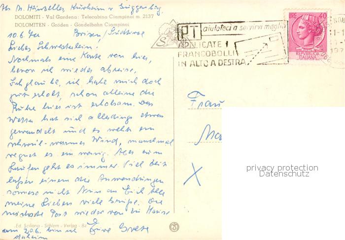 73898989 alte Postkarte Seilbahn Cable-Car Telepherique Dolomiti Vai Garden postalisch gelaufen Erhaltung siehe scans [IrynaD87] KatCode: 22040000000400