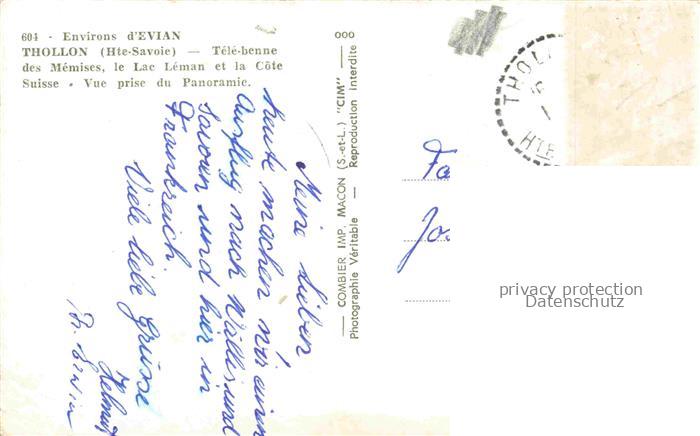 74037866 alte Postkarte Seilbahn Cable-Car Telepherique Evian Thollon postalisch gelaufen Erhaltung siehe scans [IrynaD87] KatCode: 22040000000400