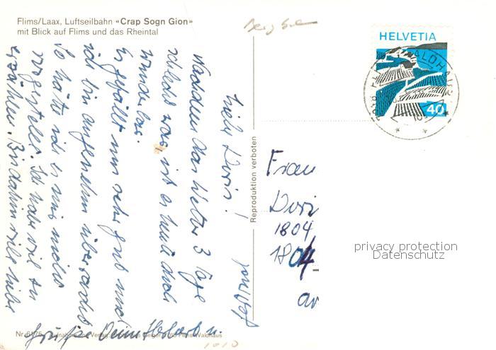 73900531 alte Postkarte Seilbahn Cable-Car Telepherique Flims Laax Crap Sogn Gion postalisch gelaufen Erhaltung siehe scans [IrynaD87] KatCode: 22040000000400