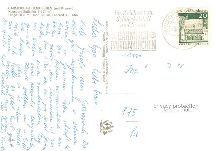 73901261 alte Postkarte Seilbahn Cable-Car Telepherique Garmisch-Partenkirchen postalisch gelaufen Erhaltung siehe scans [IrynaD87] KatCode: 22040000000400