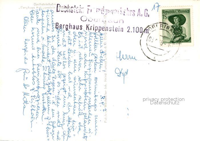 73899063 alte Postkarte Seilbahn Cable-Car Telepherique Krippenstein postalisch gelaufen Erhaltung siehe scans [IrynaD87] KatCode: 22040000000400