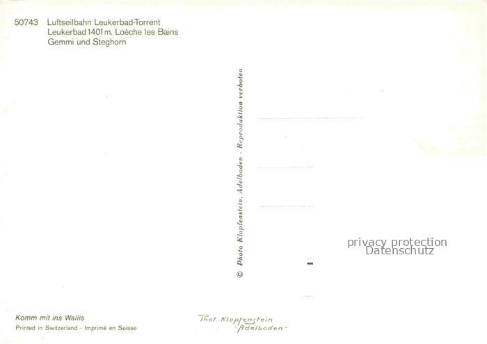 74050674 Seilbahn Cable-Car Telepherique Leukerbad Torrent Loeche les Bains Schweiz postalisch nicht gelaufen Erhaltung siehe scans [SanaeD93] KatCode: 22040000000400