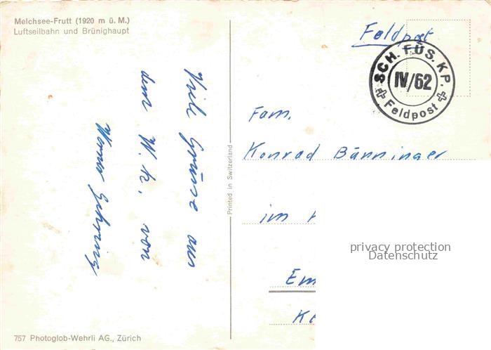 74063753 alte Postkarte Seilbahn Cable-Car Telepherique Melchsee Frutt Bruenighaupt postalisch gelaufen Erhaltung siehe scans [IrynaD87] KatCode: 22040000000400