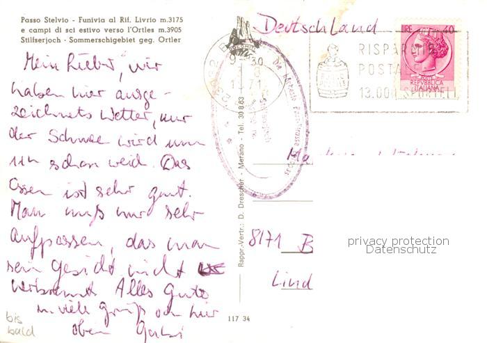 73901255 alte Postkarte Seilbahn Cable-Car Telepherique Passo Stelvio postalisch gelaufen Erhaltung siehe scans [IrynaD87] KatCode: 22040000000400